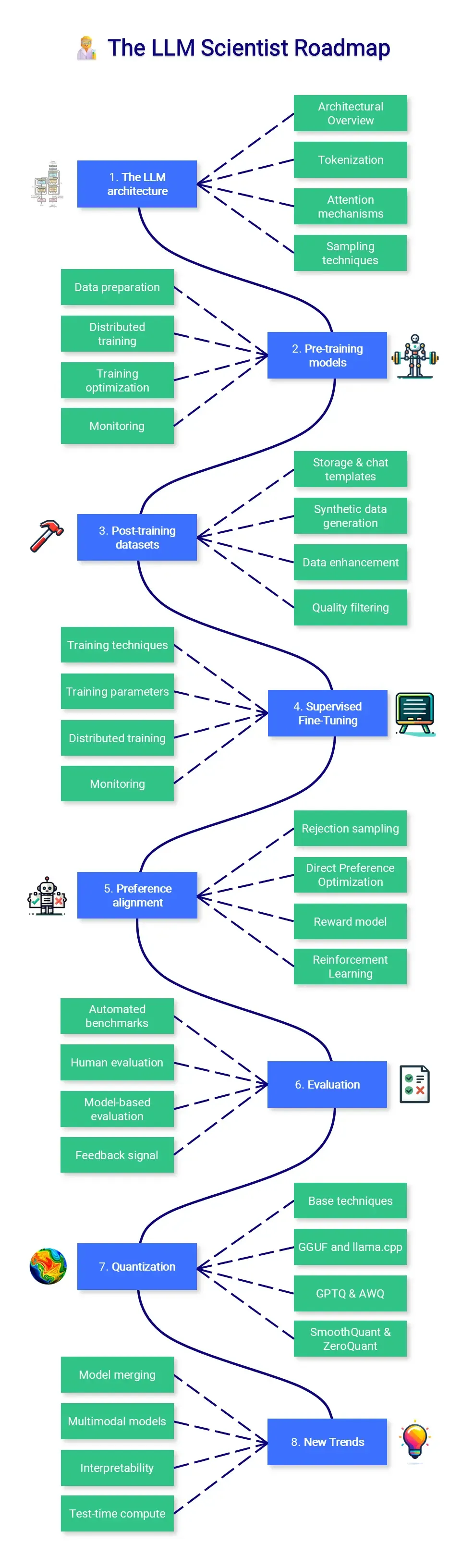 - 🧑🔬 The LLM Scientist focuses on building the best possible LLMs using the latest techniques.